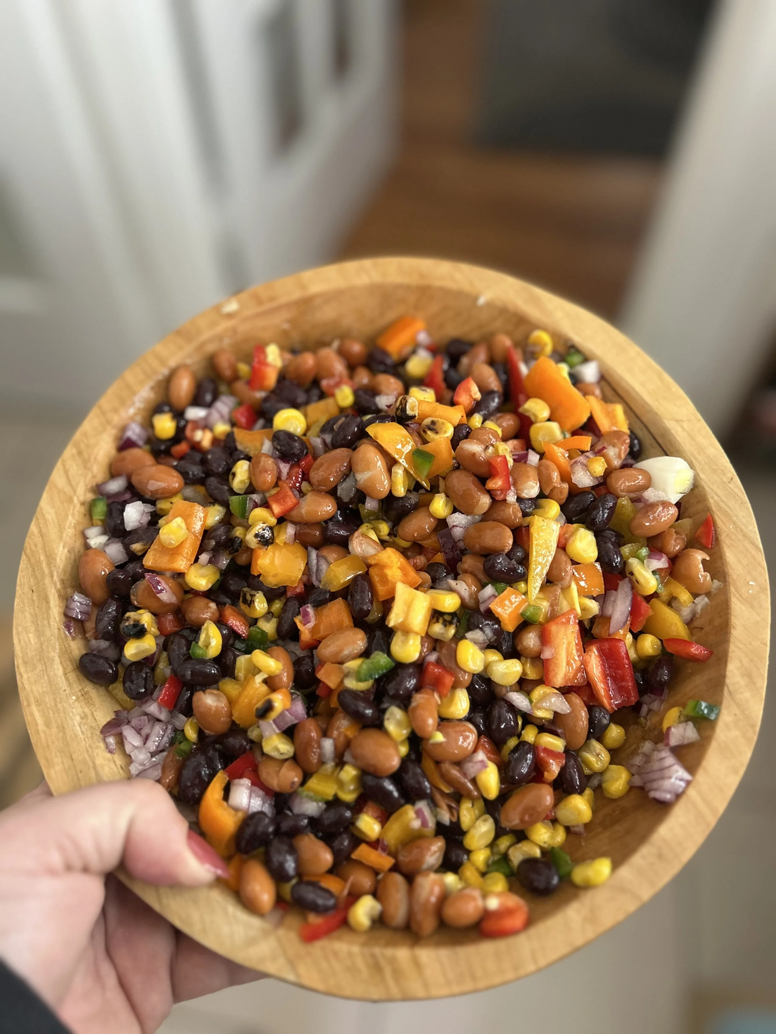 So you can pretty much guarantee to find a dense bean salad in our fridge. With a base of any combination of beans, and then all kinds of other fun additions. I’ve done Italian themed, fajita inspired, and this week we did a take on cowboy caviar.